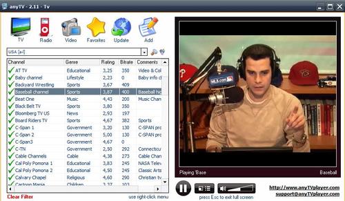 Програма для онлайн перегляду телевізійних каналів і іншого відео контента. Крім того, ANYTV дозволяє прослухувати через інтернет безліч радіостанцій зі всього світу. У програмі зручно реалізовано сортування tv-каналів і радіостанцій. Користувач може швидко відсортувати потрібні йому канали по країні, жанру, опису, якості відтворення (бітрейту). Жанри tv-каналів представлені вельми обширно: новини, аналітика, розважальні телепередачі, спорт, музика, мультфільми, культура